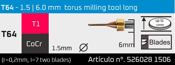 T64 – 1.5 | 6.0 mm torus milling tool long